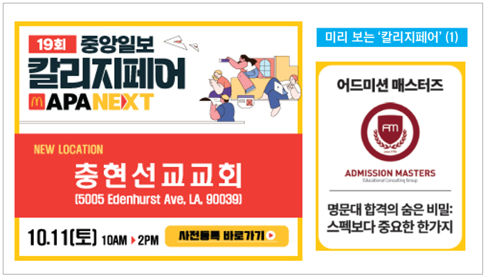 사립대 학비는 10만 달러에 육박하고 입시 제도는 해마다 달라진다. 한인 가정의 고민은 단순한 합격을 넘어 전략적 지원, 재정보조 확보, 미래 설계로 옮겨가고 있다. 중앙일보는 이러한 현실을 반영해 제19회 칼리지페어를 마련했다. 변화하는 대입 환경 속에서 학생·학부모가 꼭 알아야 할 정보를 전하고 성공적인 진학을 돕는 길잡이가 되고자 한다.