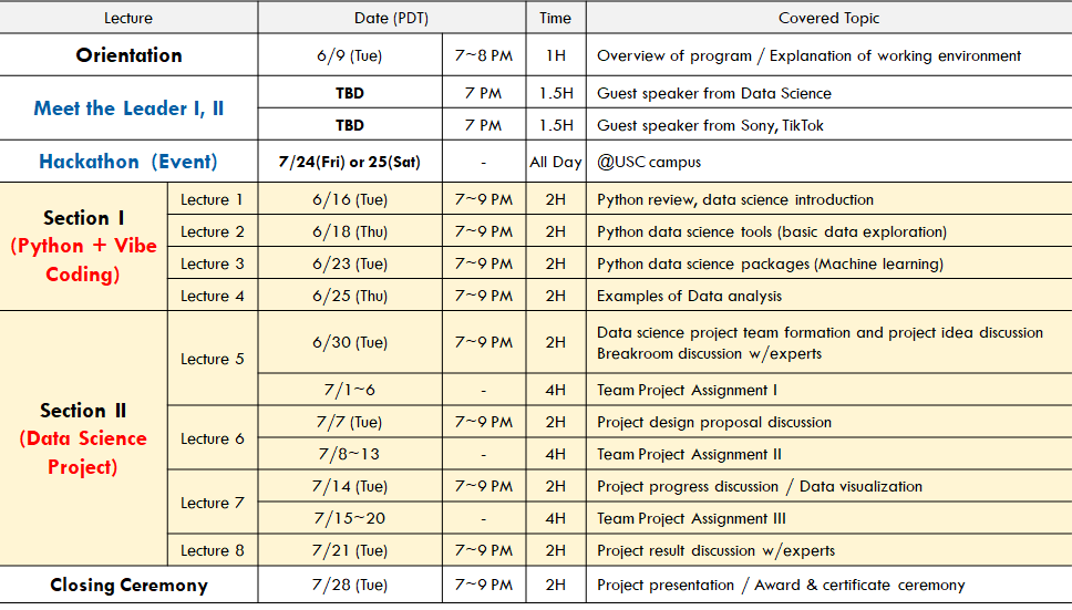 • 4단계 (결과): USC에서 진행되는 오프라인 해커톤(1일)과 프로젝트 결과물 최종 발표를 통한 실전 경험