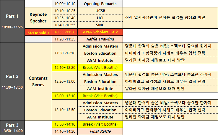 누구나 무료로 참여할 수 있다. 참가를 원하는 학생과 학부모는 bit.ly/19thKDCollegeFair 에서 사전등록 가능하다.