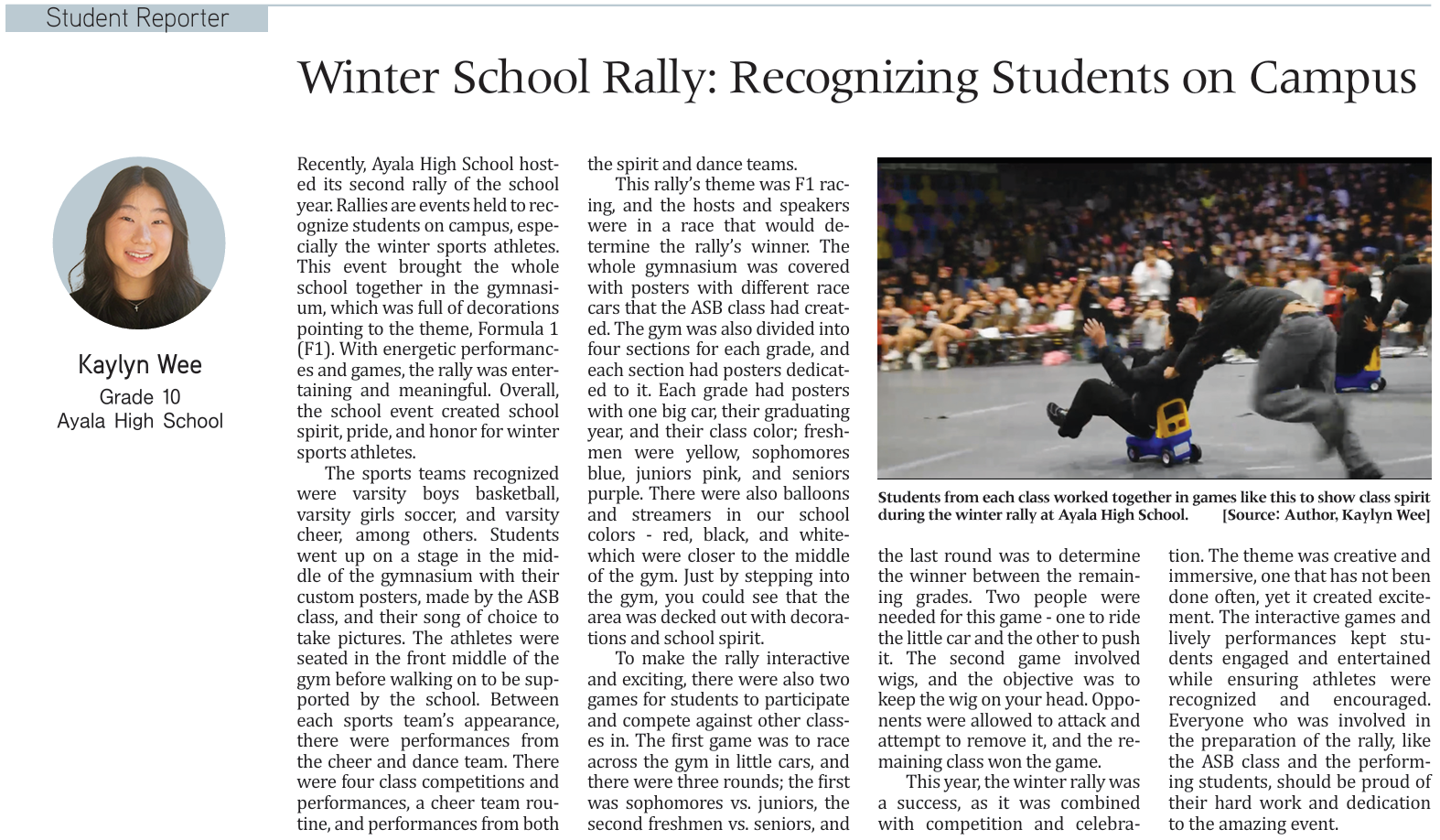 Winter School Rally: Recognizing Students on Campus (by Kaylyn Wee)