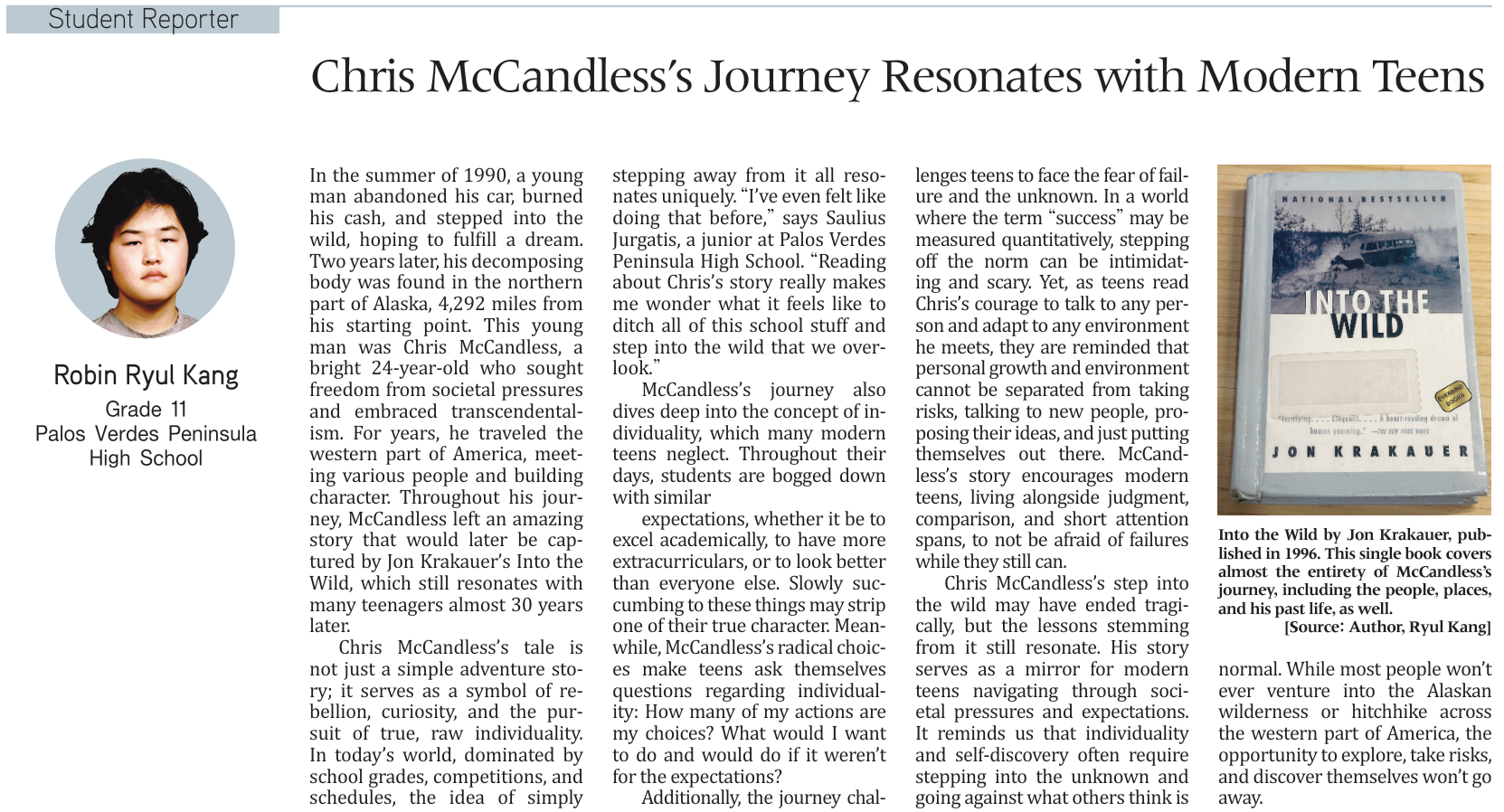 Chris McCandless’s Journey Resonates with Modern Teens (by Robin Ryul Kang)