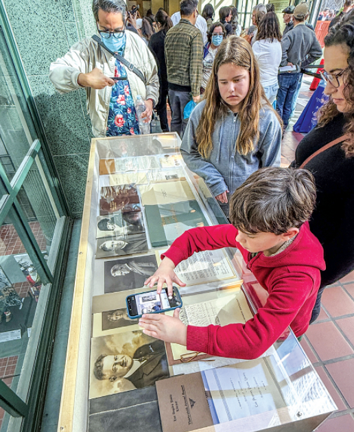 타임캡슐 속 자료들이 LA중앙도서관 로비에서 전시 중이다. 김상진 기자